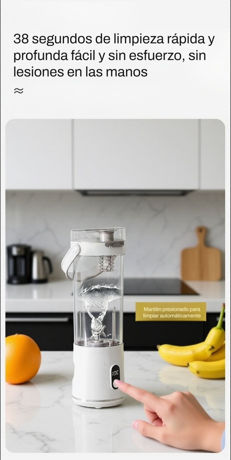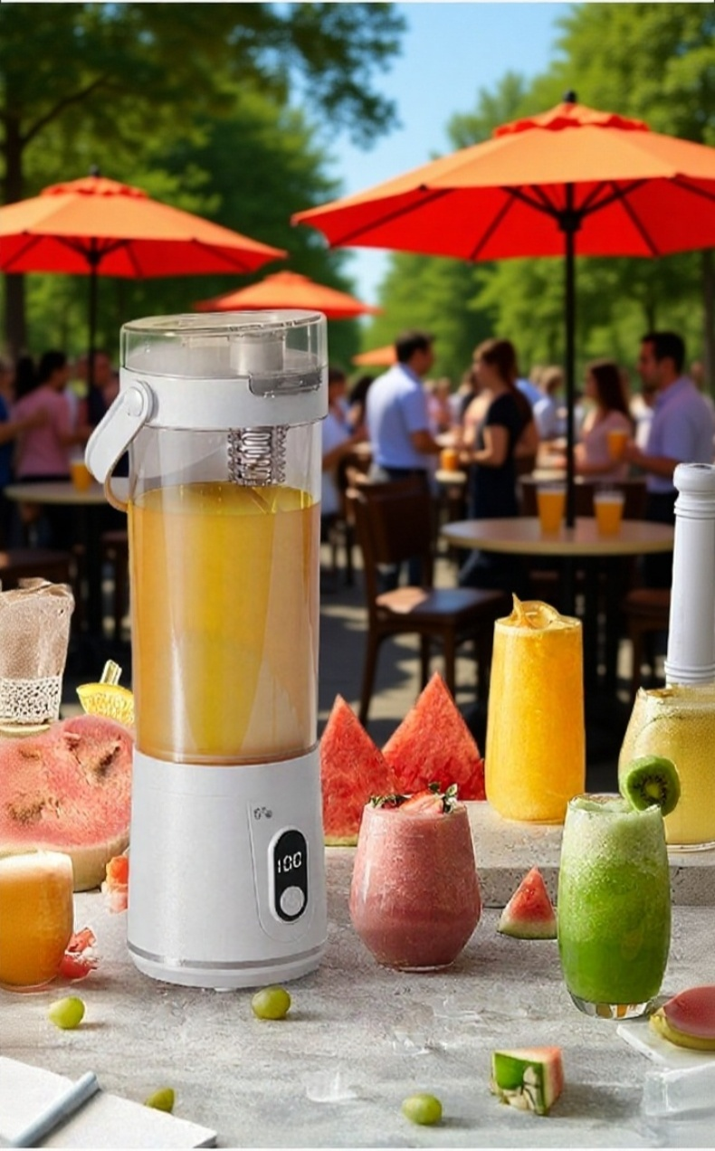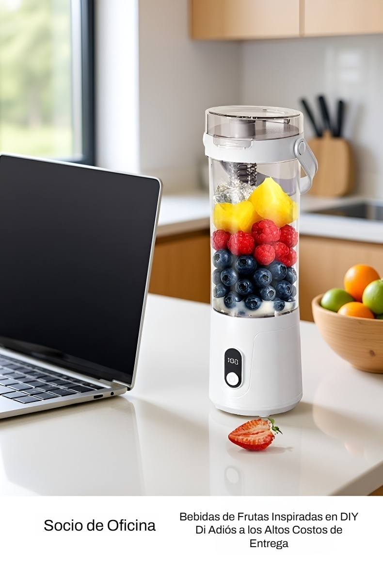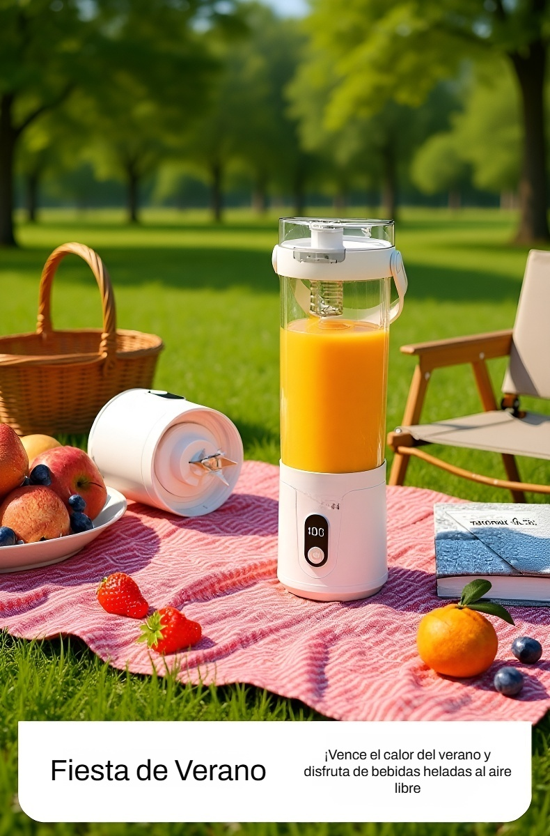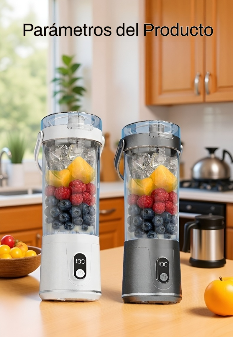 ● Diseño compacto y portátil que te permite llevarlo a cualquier lugar y disfrutar de jugos frescos en cualquier momento. ● Funcionamiento inalámbrico con batería recargable, ideal para uso doméstico y actividades al aire libre sin necesidad de enchufes. ● Fácil de usar y limpiar, ahorra tiempo en la preparación de tus bebidas favoritas y mantiene tu cocina ordenada. ● Motor potente que exprime frutas y verduras rápidamente, conservando todos los nutrientes y el sabor natural. ● Materiales de alta calidad, seguros para alimentos y duraderos, garantizando un uso prolongado y saludable para toda la familia.
